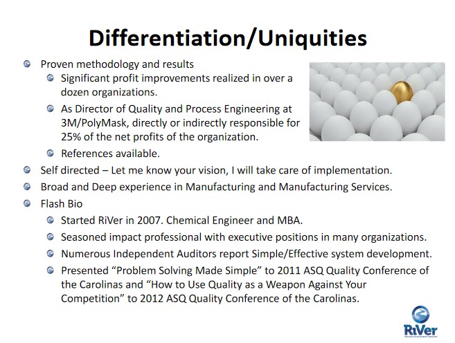 Over 35 years of manufacturing experience in the chemical, coating and converting industries as a Process Engineer, Engineering Manager and Director of Quality and Process Engineering.